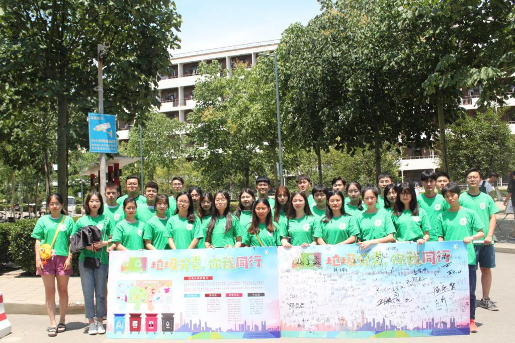 志愿者们顶着炎炎烈日在宿舍楼前、食堂附近向过往的同学们讲解垃圾分类的方法和意义,发放了《推进垃圾分类,践行绿色发展校园垃圾分类倡议书》,号召同学们认真学习环保知识,从勤俭节约,正确分类投放垃圾等力所能及的事情开始,养成垃圾分类的良好习惯,身体力行地做环境保护的践行者。现场同学们对志愿者们树立起了大拇指,并纷纷在签名板上签名,表示将积极参加到垃圾分类的行动中来,为环境保护、绿色发展贡献一份力量。最后,参加本次活动的志愿者们在签名满满的签名板前合影留念。
