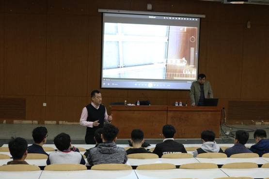 吴老师介绍了BIM技术信息完备性、信息关联性、信息一致性、 可视化、协调性、模拟性、优化性和可出图性八大特点。紧接着他播放了淄博施工设计案例视频,向同学们展示了BIM在设计中的应用,从BIM设计过程的资源、行为、交付三个基本维度,给出设计企业的实施标准的具体方法和实践内容。随后对视频中的BIM技术的应用进行了深入解读,说明了在项目的不同阶段,不同利益相关方通过在BIM中插入、提取、更新和修改信息,以支持和反映其各自职责的协同作业的特点。最后,吴老师总结了对BIM的思考,简述了以BIM应用为载体的项目的价值。至此,本次活动圆满结束。