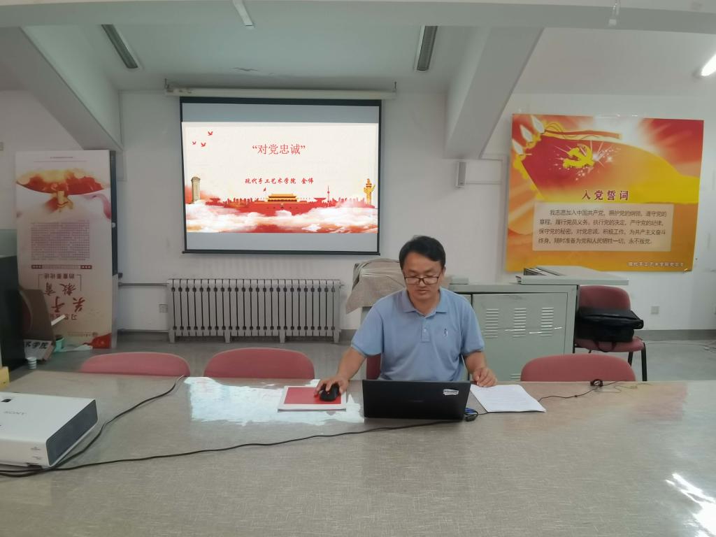 2021年6月25日,现代手工艺术学院党总支书记金伟在B444多媒体教室为学院党员教师讲授《对党忠诚》党史学习教育专题党课。