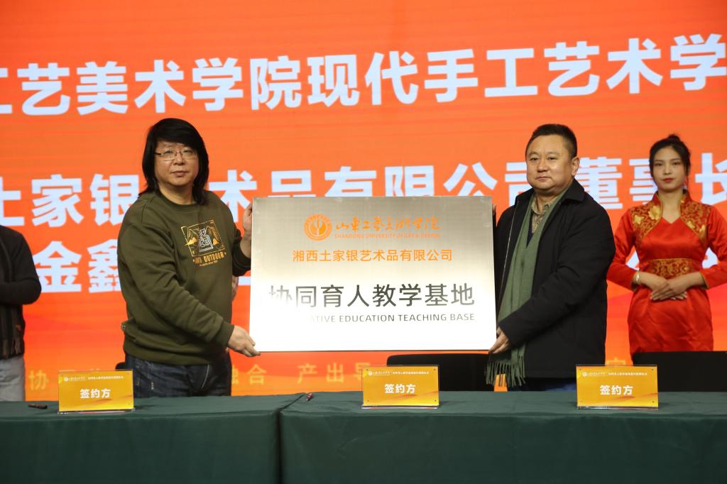 出席参加本次活动的合作企业嘉宾有山东黄金鑫意工艺品有限责任公司、湘西土家银艺术品有限公司董事长张英正,阳信瑞鑫集团有限公司副董事长任金海、设计总监唐启恺,沐愔坊艺术设计馆设计部总监向洪涛,淄博精工美术琉璃制造有限公司总经理翟亮,现代手工艺术学院各专业方向负责人及课程负责教师参加了签约挂牌仪式。
