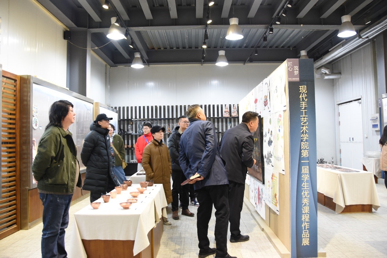 伴随着新年的钟声,踩着欢快的鼓点,带着幸福的喜悦,现代手工艺术学院第一届学生优秀课程作品展开展了!此次展览展示了学院纤维染织、漆艺、金工、首饰、玻璃、陶瓷6个专业方向以及公共艺术专业学生创作的330件优秀课程作业。
