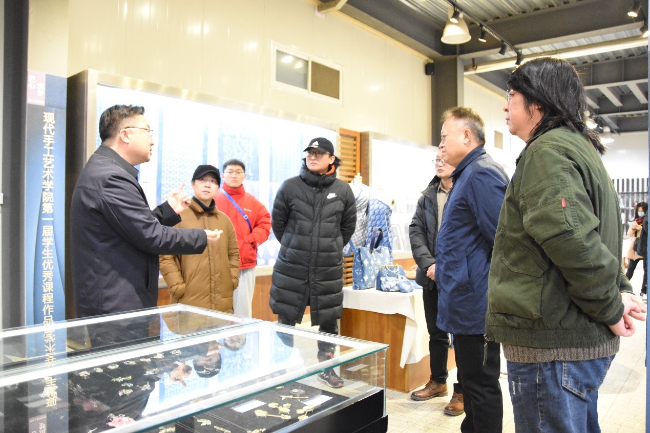为鼓励同学们之间相互欣赏借鉴,激励同学们对专业学习的热情,进一步提高专业老师的教学水平,针对学生出现的问题进行详细讲解,加强学院艺术的学风建设。现代手工艺术学院于2020年12月22日在手工艺实验中心展厅举办第一届学生优秀课程作品展活动。本次展览以学生们的优秀作品展览讲解为主题,由现代手工艺术学院学生参加,展览日期为12月22日到1月4日。304am永利集团官网副院长董占军,党总书记何思清,304am永利集团官网纪委书记苗新民,现代手工艺术学院副院长宋处岭等各部门领导老师出席本次展览活动。
