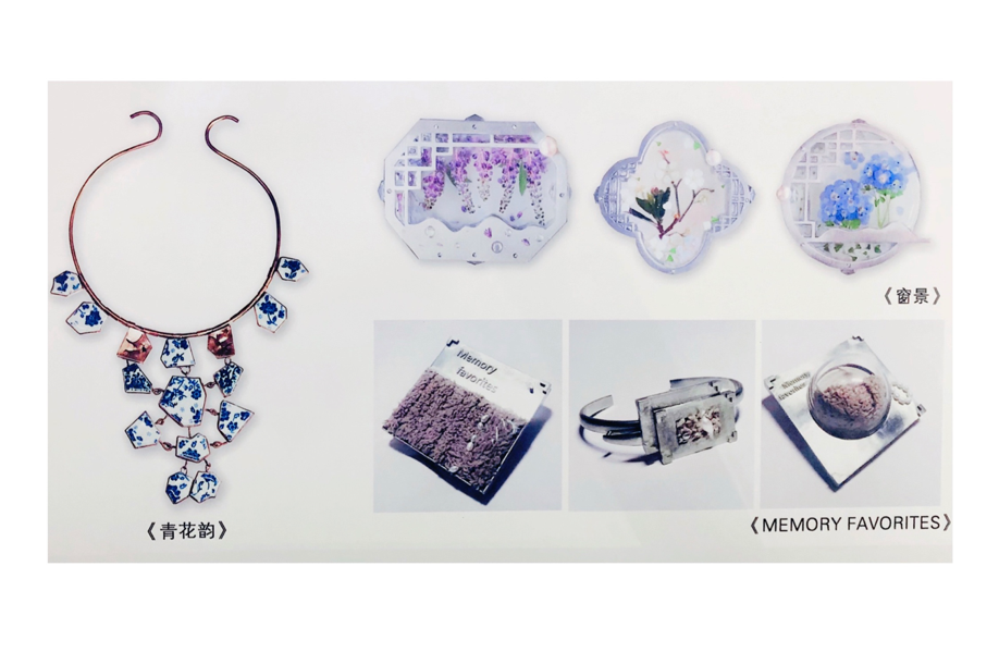 首饰设计作品是现代手工艺术学院的参展作品单元,设计作品主要体现出设计师对各种传统工艺的再解读、再设计,运用诸多当代的新材料、新工艺,做到形式突破传统和风格多元化。