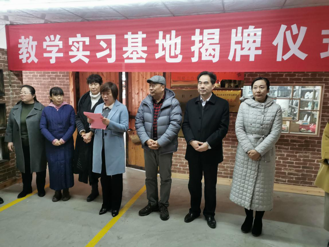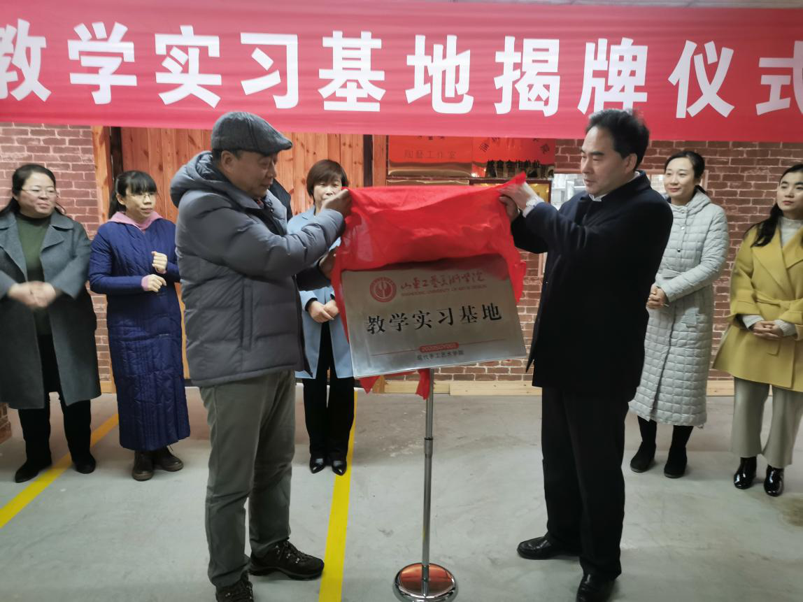 最后,现代手工艺术学院院长赵进与博山区委常委、区宣传部部长高健为教学实习基地揭牌。
