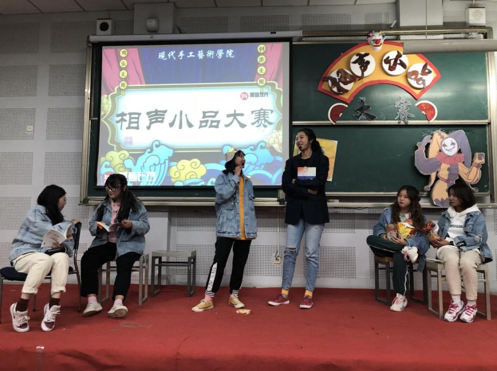 为了丰富校园文化氛围,10月27日晚上,现代手工艺术学院在长清校区综合办公楼九合堂举办了相声小品大赛。现代手工艺术学院学生会主席团以及各部部长出席此次活动并担当评委。