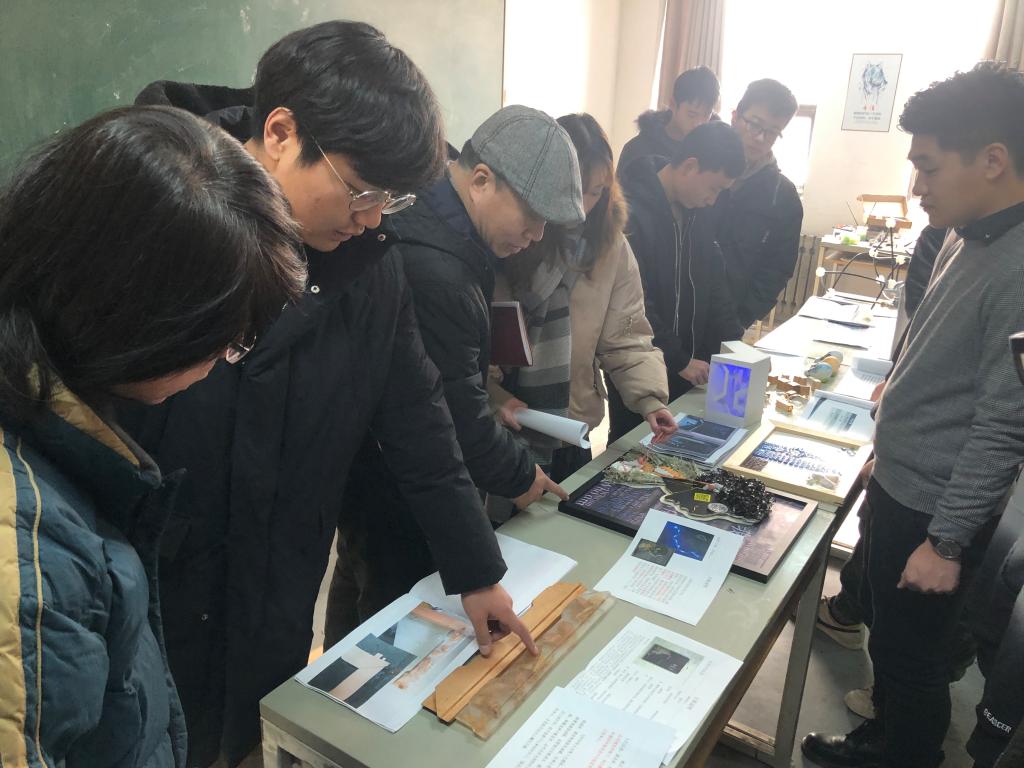 2019年1月4日下午,为了解毕业设计工作的进展情况,督促毕业设计工作的顺利进行,现代手工艺术学院组织开展毕业设计中期检查工作。参加此次检查工作的有院长赵进、副院长宋处岭、教学秘书邵世琦、各教研室负责人及毕业设计指导教师。