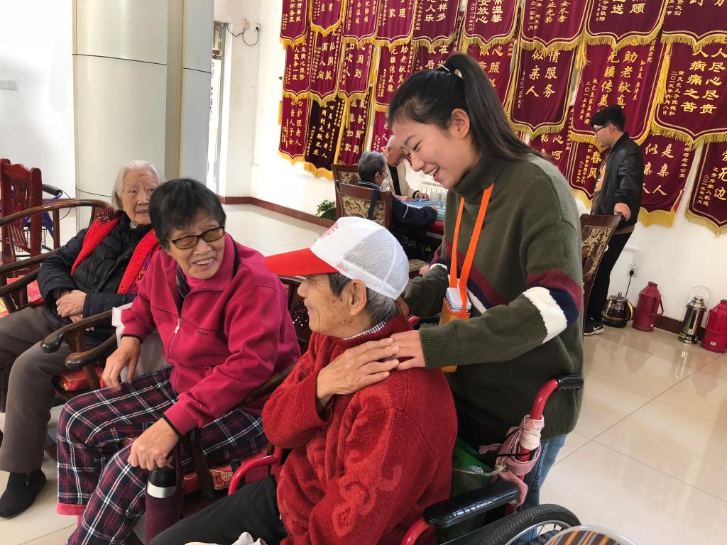在负责人的安排下,志愿者们开始分工并积极投入到关爱老人的工作当中。他们陪着爷爷奶奶交谈问候,大厅的气氛很快活跃起来。稍事调整,志愿者们开始了才艺表演,如古筝演奏、手语表演等等,深受老人们的喜爱。其中,赵若言同学表演的京剧将演出氛围推向了高潮,在爷爷奶奶们的强烈要求下又唱了一出。除了志愿者们精彩的节目汇演,爷爷奶奶也为大家唱起几首红歌,歌声中满是他们对祖国、对党的热爱,值得我们去学习。表演结束后,志愿者们坐在爷爷奶奶面前,和他们拉手谈心,老人们的脸上都洋溢着笑容。时间过得很快,随着活动接近尾声,志愿者们与老人们留影告别后返校。
