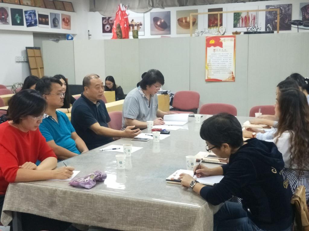 9月18日,广西工艺美术学校副校长李姮、学校办公室主任朱俊璇和教学管理负责人龚志婧、黄麟舒一行4人来现代手工艺术学院进行考察交流。院长赵进、党总支书记金伟、副院长宋处岭、党总支副书记王国燕和各教研室主任、教师代表陪同参观和座谈。