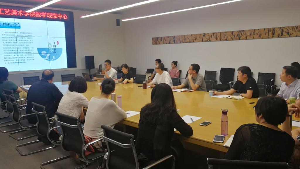 赵进院长首先汇报了学院社会主义核心价值观主题创作的进展情况,之后相关设计团队分别汇报了传统草柳编工艺创作、漆艺餐具设计等主题创作情况,并介绍相关创作作品。