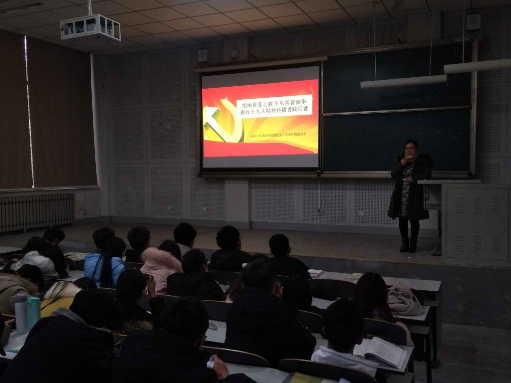 团课以《唱响青春之歌,不负青春韶华,做好十九大精神传播者践行者》为主题,围绕“中国特色社会主义新时代的意义、特点和阶段目标”、“习近平新时代中国特色社会主义思想的丰富内涵”、“新时代中国青年的历史使命”三个方面,带领同学们一起学习十九大精神。最后,李清华老师传达了共青团山东省第十四次代表大会有关精神。
