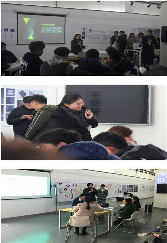 活动中,各个团队和个人通过破冰环节相互认识,加深了解,活跃气氛,在此基础上,参赛个人以兴趣为基础完成团队组建。随后,在指导老师指导下,各团队以商业模式画布为工具,团队成员展开头脑风暴,完成项目的初步构想和团队建设。在电梯演讲环节,各个参赛团队进行来队名、队徽、队歌展示,并用60秒时间展示出团队基本构想,团队之间互送建议与意见,加深了团队之间的了解。在指导老师项目深化指导基础上,各个团队开始紧张备战8分钟项目路演,激烈讨论,深入调研,分工合作,进一步丰富完善项目方案。项目路演环节中,各参赛团队从业务描述、市场前景、营销策略、盈利模式、客户细分、市场风险、财务状况、管理团队等方面,全面汇报来团队创业项目方案。参赛团队准备较为充分,陈述精彩,讲解精炼、表达流畅,充分展现了工美学子的精神风貌和创业热情。