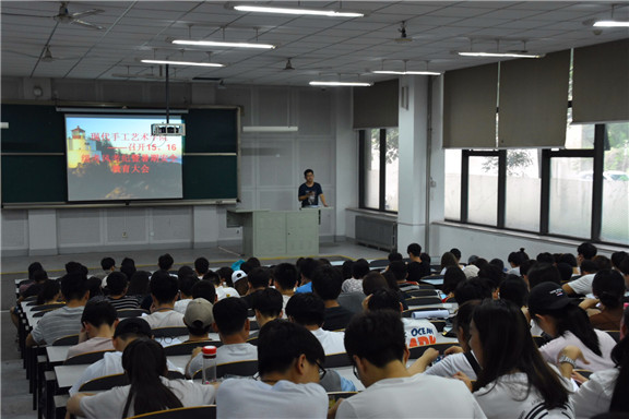 2017年7月6日下午五点,现代手工艺术学院于304am永利集团官网长清校区综合办公楼一合堂召开2015、2016级考风考纪和暑期安全教育大会。会议由我院辅导员周茂同主持。