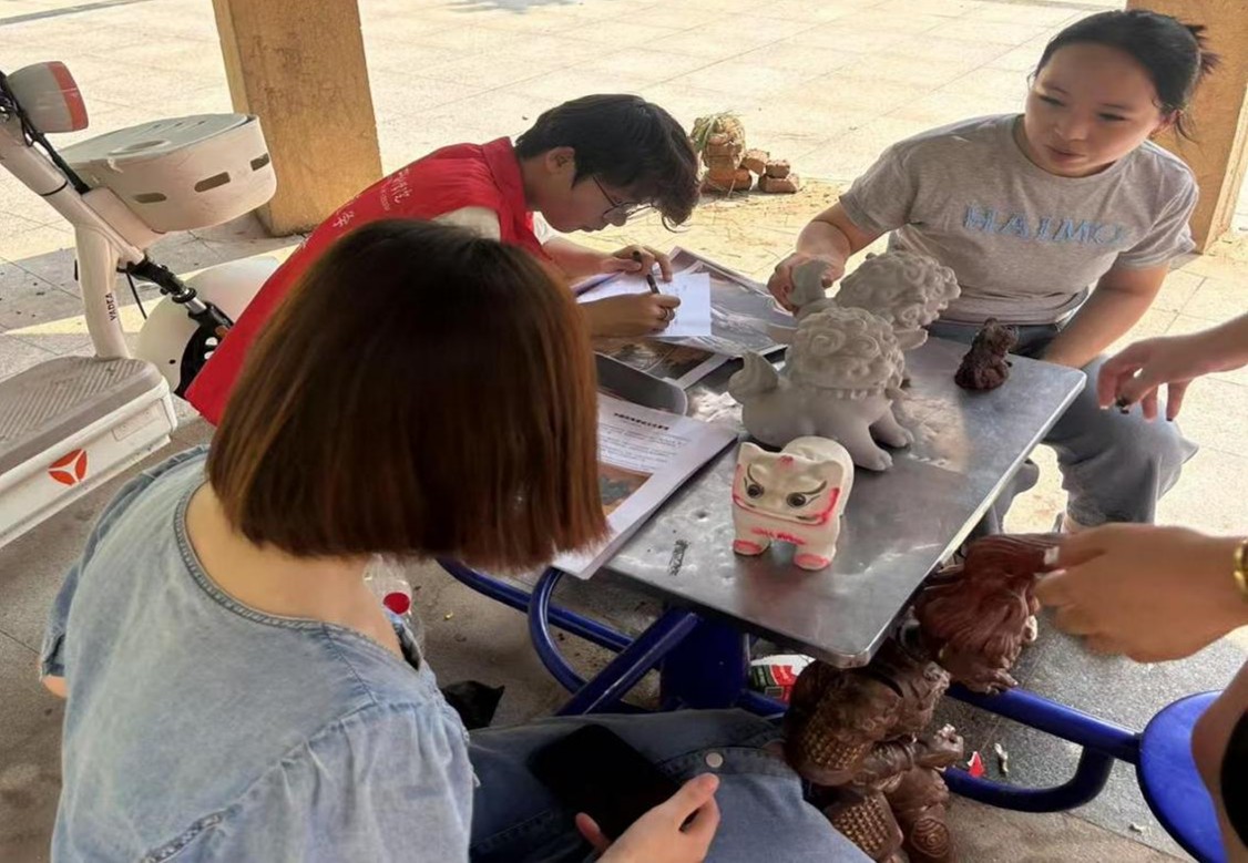 在社区活动中,我们聚焦中华优秀传统文化,志愿者们通过资料分享、实物展示(如图中传统工艺雕像 ),向居民尤其是孩子,讲述文化故事、工艺传承。从古老技艺到经典文化符号,让大家感受传统文化的魅力与深厚底蕴,激发对传统文化的热爱,以实际行动传承、弘扬,让优秀传统文化在新时代绽放光彩,融入日常,滋养心灵。