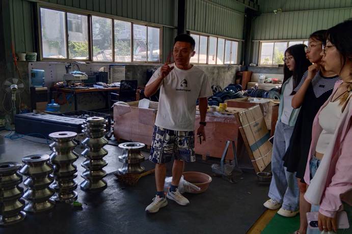 调研首站,团队来到长清区“华东会展服务第一品牌”实践基地。实践基地负责人从建筑艺术专业角度,为队员们讲解长清区建材产业发展历程,从传统的青砖黛瓦到现代的高性能混凝土,建材的演变见证着城市的发展轨迹。通过馆内珍藏的老照片和实物展品,队员们直观感受到建材技术的革新对城市面貌的改变。