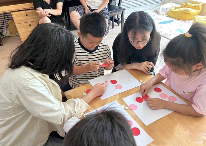 活动开始,团队成员提前准备好教学所需要的材料,帮助孩子们更好的发挥想象,让孩子们在绘画中感受快乐,敢于用色彩表达自我,种下对“美”的向往,开拓孩子们的思维。团队成员通过实践提升沟通能力,责任意识,在童心世界里重拾纯粹与热爱,传递“美育绘画陪伴”的理想,呼吁更多人关注儿童的精神世界,用微小行动汇聚温暖。