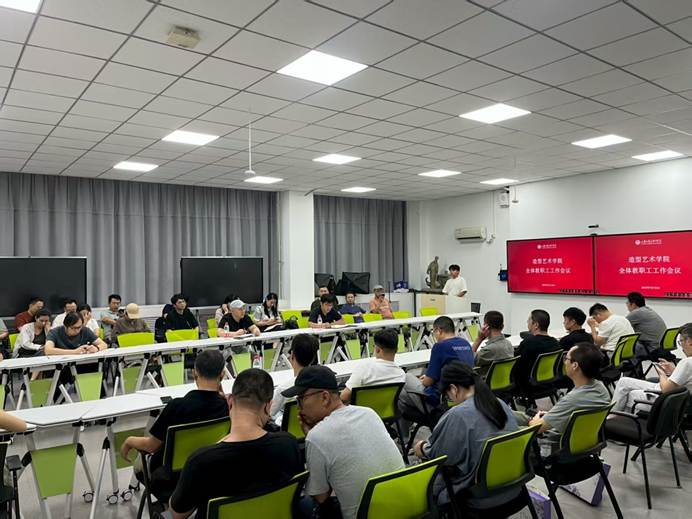 9月10日下午,造型艺术学院在二楼多媒体召开秋季学期全体教职工大会。会议由党总支书记李希进主持,院长刘宁及全体教职工参会。