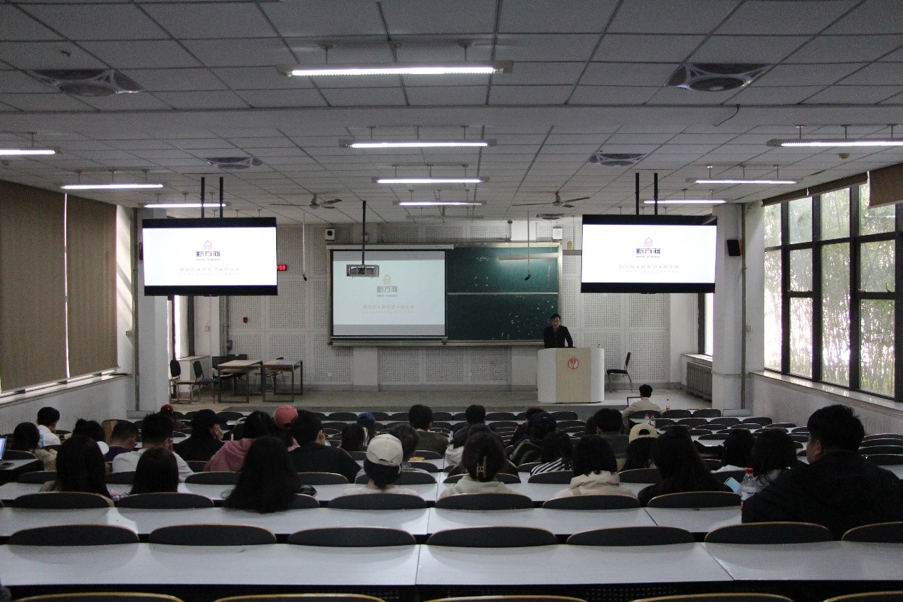 巩光振首先播放了企业文化宣传片,向同学们介绍了公司的经营板块和企业文化,详细生动的讲述了自己的大学生活还有创业初期遇到的一些困难和问题,以及解决问题的方法和技巧,具有很强的实用性和指导性,让同学们受到深刻启发。最后,巩光振激励大家,要对自己的能力方面要求更高,努力提升自己的各方面水平,并鼓励大家在创新创业的道路上要勇于试错,不断从失败中走向成功。