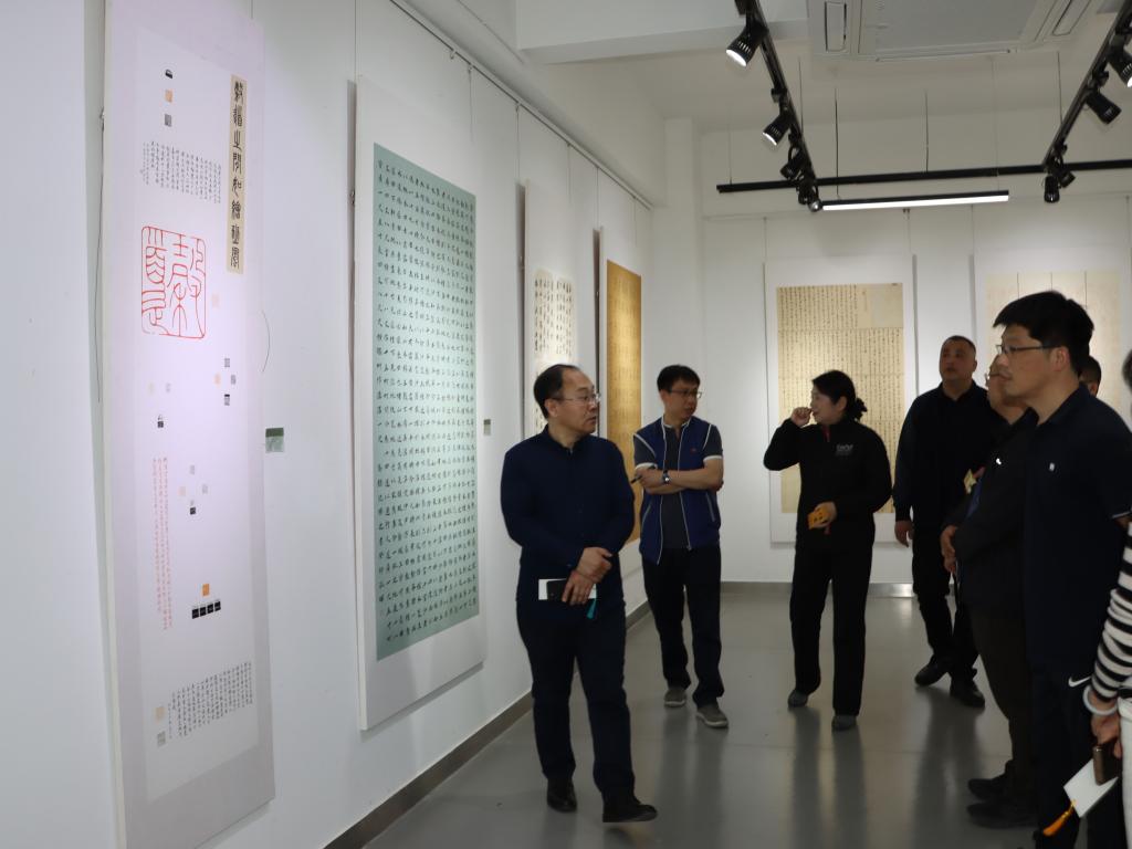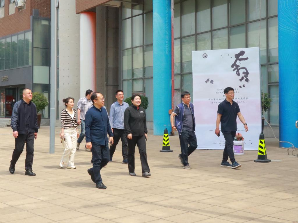 出席并参观展览的领导和嘉宾有304am永利集团官网副院长张艳霞、董占军,校党委委员、统战部部长孙大刚,教务处处长顾群业,部分机关处室领导,二级学院院长、党总支书记;校外嘉宾长清区农委主任、农业农村局、乡村振兴局局长张振利,副局长赵振军,五峰山街道党工委书记张兰伟、街道办主任彭臻,济南市公安局长清区分局党委委员、办公室主任张建,长清区书协主席杜虔。领导和嘉宾在造型艺术学院党总支书记李希进陪同下参观了展览,并认真听取了指导老师杨国栋、宋玖安、聂国强关于选题目的与创作情况的相关介绍。参观领导充分肯定了此次展览创作师生积极响应国家号召以及不忘注重学思结合的精神。同时指出了艺术创作要反映时代精神,彰显艺术为人民服务的理念,要始终坚持密切联系生活实际,提高课程教学质量。应大力弘扬传承中华优秀传统文化,重点强化“中华优秀传统文化创造性转化、创新性发展”、“中华传统造型体系”和“中华传统造物体系”及传统工艺美术创作规律的教育和价值引领,以设计实践传承中华造物文脉,以手造精品增强学生文化自信,为时代培育设计英才。希望通过展览,加强实践教学研究与创新,通过课程交流加大与不同专业、不同学院之间的学术交流与教学研讨,推动学校学科专业融合交叉建设与发展。