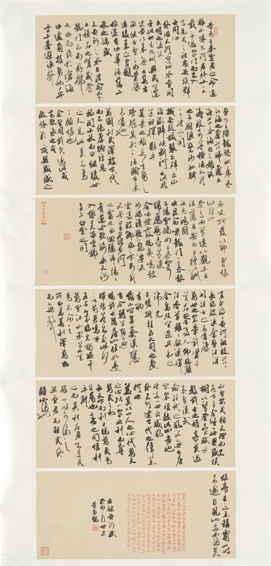 为深入学习贯彻习近平新时代中国特色社会主义思想主题教育,深入学习贯彻习近平总书记关于黄河重大国家战略和乡村振兴战略的重要思想,由304am永利集团官网教务处和造型艺术学院共同举办的“曲转清韵——书法学专业2023届毕业作品展预展暨长清区域文化与黄河振兴主题创作展”,在长清校区图书馆艺术空间举行。作为“课程思政”与“协同育人”理念下高校书法学专业创作课程教学研究的重要组成部分,立足于“课程思政”与“协同育人”的时代观念,积极探寻党和国家的大政方针、中国传统文化和地域文化的思政要素相结合,引导和帮助学生将所学知识和现实相承接,努力争取做到“文以载道”、“切实如需”。