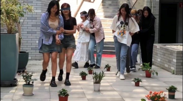 活动伊始,张钰唅老师先邀请大家做了破冰小游戏,大家两两一组,一个做“盲人”,一个做“哑巴”,由“哑巴”带领“盲人”穿越障碍物安全抵达目的地,通过小游戏大家逐渐变得熟络了起来,相互之间也建立了信任感。