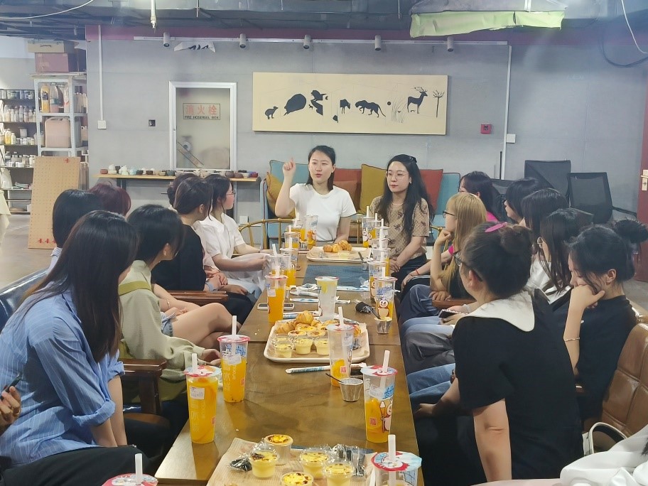 为了深入学习贯彻习近平新时代中国特色社会主义思想主题教育,落实好《行动计划》,全面加强和改进新时代学生心理健康工作,提升学生心理健康素养,建强心理人才队伍,提升人才培养质量,更好的让心理委员帮助同学们处理压力,缓解焦虑、紧张等情绪,更专业的了解同学们的心理状态,5月17日下午三点,造型艺术学院特邀请了学生处心理咨询中心的张钰唅老师为2022级、2021级、2020级的全体心理委员开展了“同理心,让助人更有温度”——大学生朋辈心理辅导技巧与心理主题班会设计的培训课程。本次心理培训沙龙分为破冰小游戏、心理工作技巧讲解、聊聊心理工作下午茶三大模块,由辅导员朱员老师组织,在园博园济南创新创业产业园陶瓷工作室举办。
