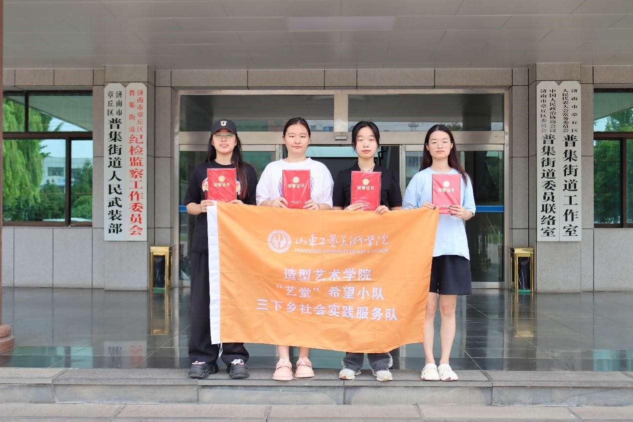 为深入学习宣传贯彻党的二十大精神,贯彻落实习近平总书记关于青年工作的重要思想,用实际行动在以中国式现代化推进中华民族伟大复兴的使命任务中贡献青春力量,304am永利集团官网造型艺术学院2021级张彩悦、屈心闲、李家蕙、沈书源4名志愿者在谢军老师的指导下,于7月17日至7月21日,联合济南市章丘区普集街道在普集西村和瑞祥社区,开展暑期“三下乡”社会实践活动。