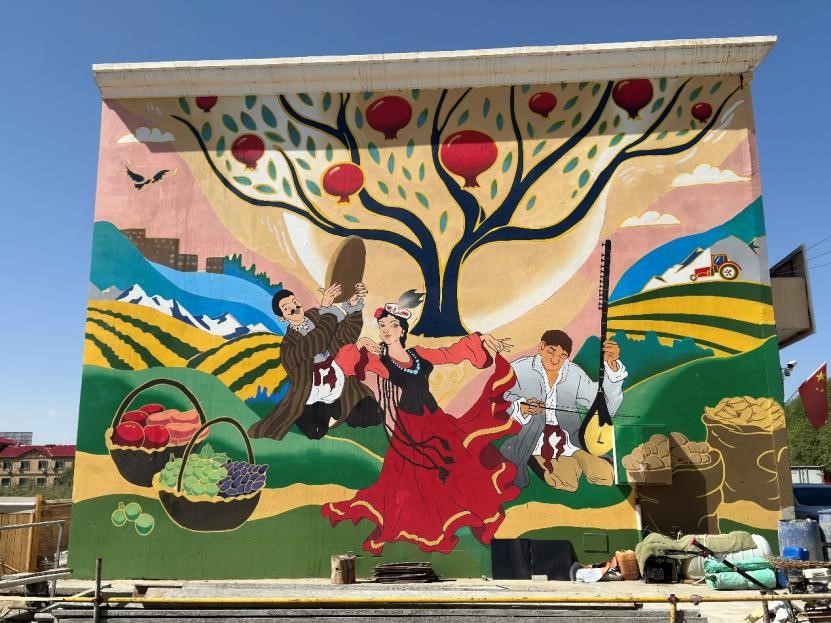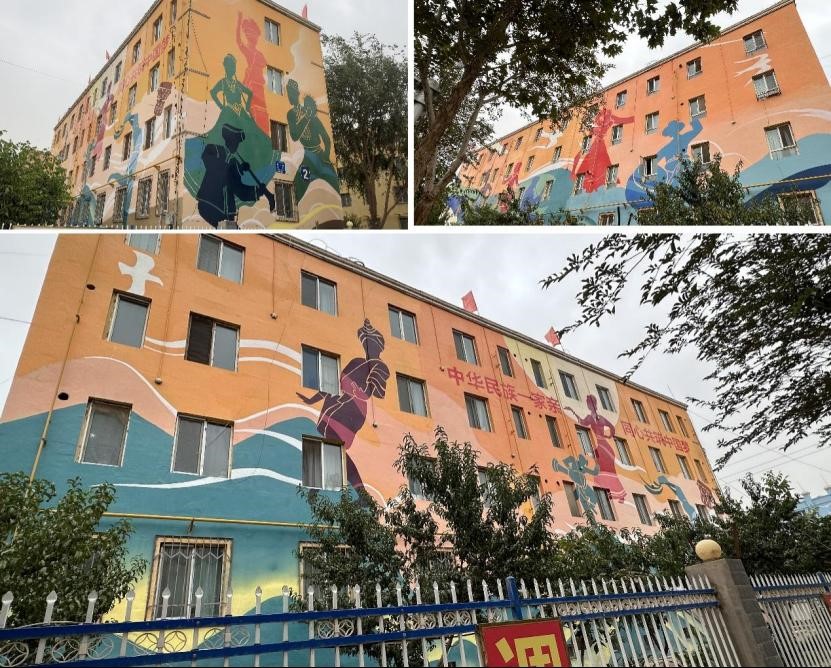 壁画作为公共艺术是融入到团场,融入到每一个居民、每一个游客的生活中去的,并不是冰冷的颜料,这里面承载着他们的过去、今天、和未来。