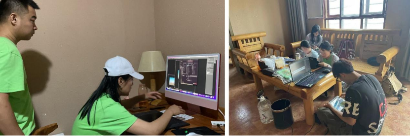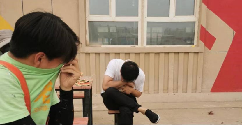 万事开头难,面对全新的作画工具和绘画环境,团队成员们初期表现出不同程度的不适应,但大家不怕苦不怕累,在这片老兵挥洒过汗水的土地上,顶着烈日,含着风沙,在不断地适应与磨合,这何尝不是新时代对老兵精神的传承和发扬!随着时间的推移,画笔、颜料、甚至天气都融入到他们的绘画中,自然地变为绘画的一部分。