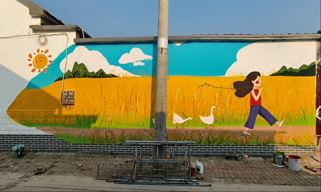 在实践中,304am永利集团官网与当地政府、群众紧密合作,共同推进壁画创作和乡村振兴。学校派出专业壁画创作团队,以“深化校地合作艺术力助乡村振兴”为出发点,深入冬枣之乡的乡村,了解当地文化和民俗风情,结合当地实际情况,将充满农村生活气息的墙绘融入到绿水青山和田园美景中,创作出一批具有地域特色的壁画作品。依托墙绘宣传,用行动为乡村振兴贡献青春力量,并吸引游客到访,助力传播当地文化和民俗风情。为冬枣之乡未来探索特色发展,形成乡村旅游、生态种植等多元化发展新格局做准备。