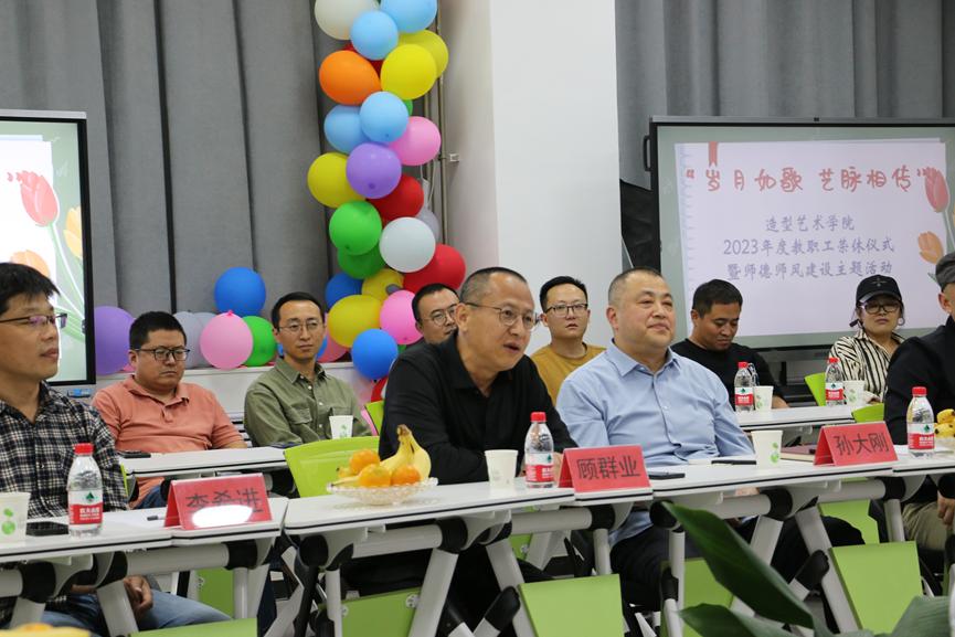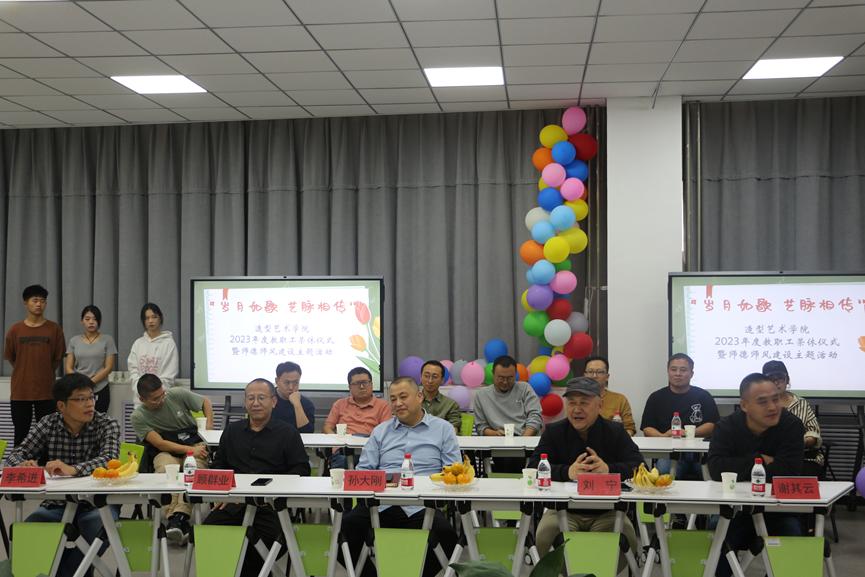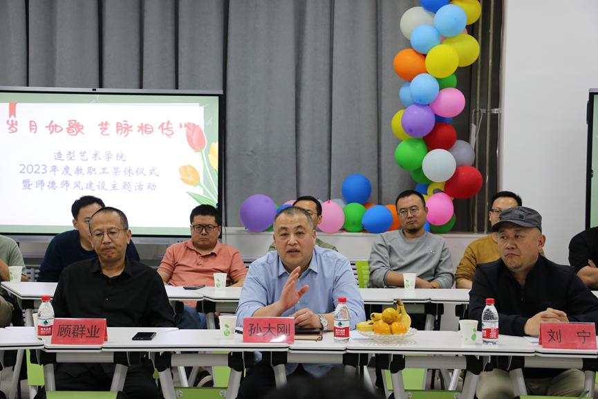 10月31日,造型艺术学院在二楼多媒体举办“岁月如歌艺脉相传”2023年度教职工荣休仪式暨师德师风建设主题活动。304am永利集团官网副院长孙大刚、教务处处长顾群业应邀出席仪式,荣休仪式由造型艺术学院党总支书记李希进主持,造型艺术学院院长刘宁、副院长谢其云、各教研室主任及办公室人员和教师代表参加。