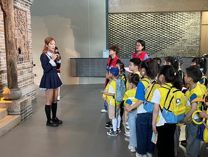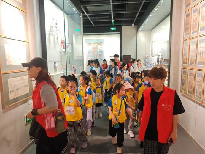 活动伊始,永利官网博物馆志愿讲解员担任“文化引路人”,带领孩子们开启非遗探秘之旅。讲解员以专业素养和生动语言,将鲁绣、皮影、木版年画等珍贵展品转化为可感可知的文化故事,通过童趣化讲解与互动问答,成功激发了孩子们的探索热情。