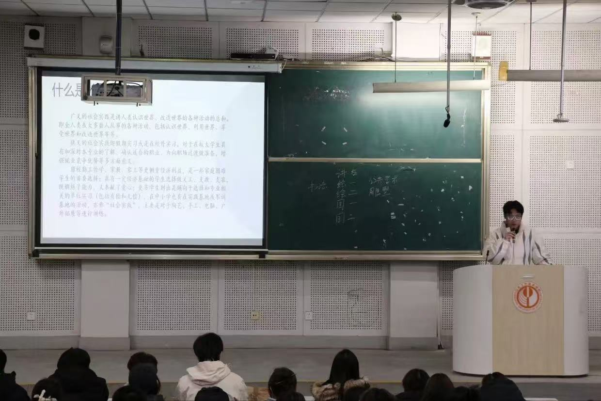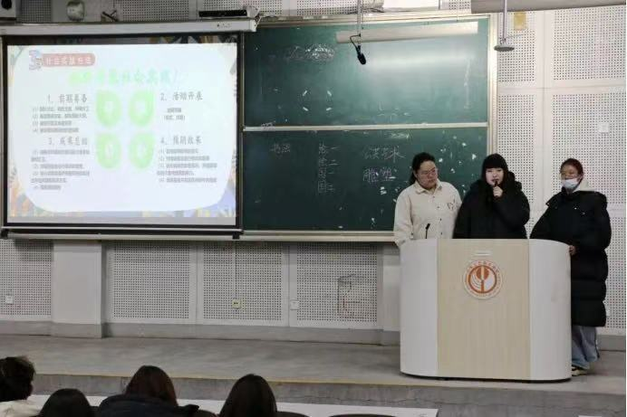 团课开始,於永卓首先阐述了社会实践的含义、意义及重要性与必要性,强调方法论与实践相结合,并鼓励新生积极参与志愿服务活动。随后杨泽轩介绍了社会实践内容,类型与开展方式,引导同学们依据专业兴趣选择实践方向。最后李翊绮以学院往年暑期实践情况为例,介绍实践过程与成果,让新生直观了解步骤,鼓舞同学们勇于发散创新思维,于实践中奉献青春,于奋斗中书写自我。
