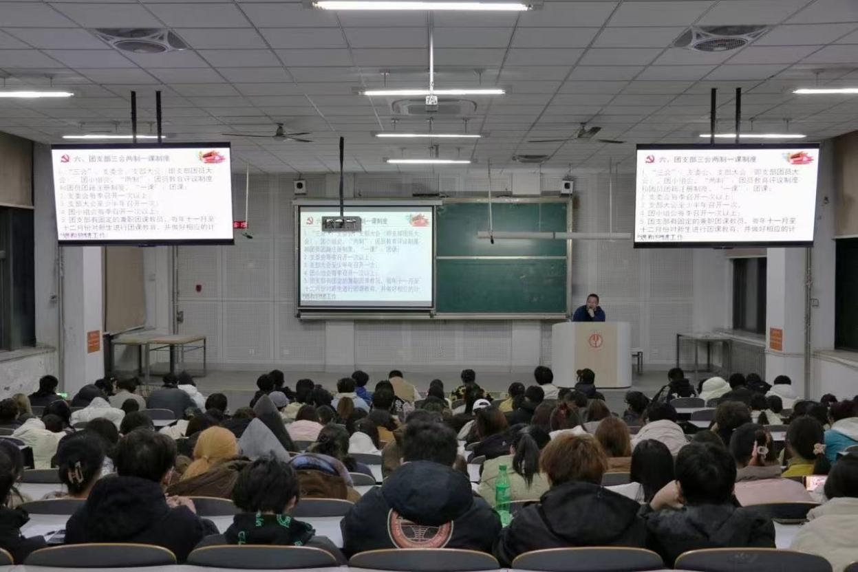 11月18日,为深入学习宣传党的二十届三中全会精神,引导青年积极向党组织靠拢,造型艺术学院团总支书记许威治于长清校区五合堂主持召开“共青团基础团务解读”专题团课。本次团课把强化思想政治教育作为目标,提升学生对于爱党爱团理念的热情,鼓励广大青年学子勇挑时代使命,敢于吃苦,砥砺前行,奋发有为。