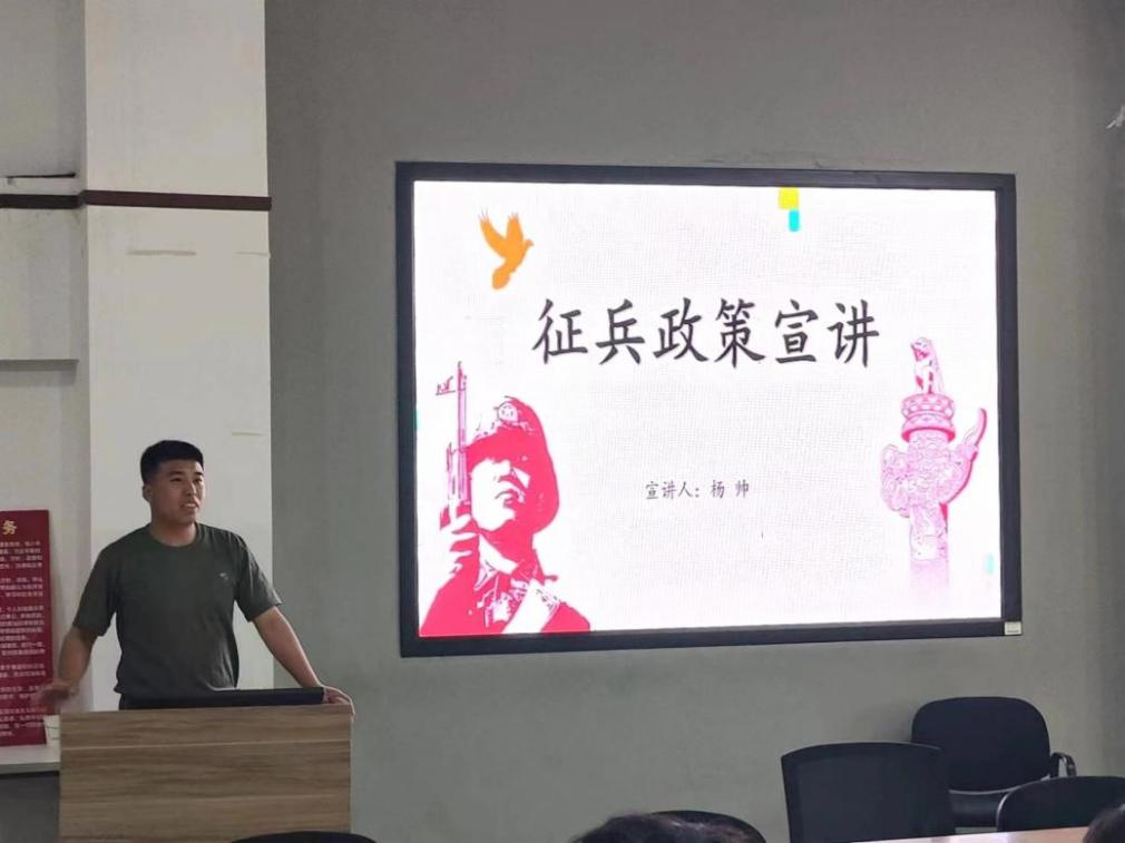 随后杨帅同样分享了丰富的军旅生活经历,播放了慷慨激昂的征兵视频,他强调参军报国是一种崇高的荣誉和责任,介绍了参军入伍流程,讲解大学生应征入伍的优待政策,从财政补助、部队发展、复学升学和免费职业技能培训、创业金融优惠税收等方面讲述服役政策及退役保障。