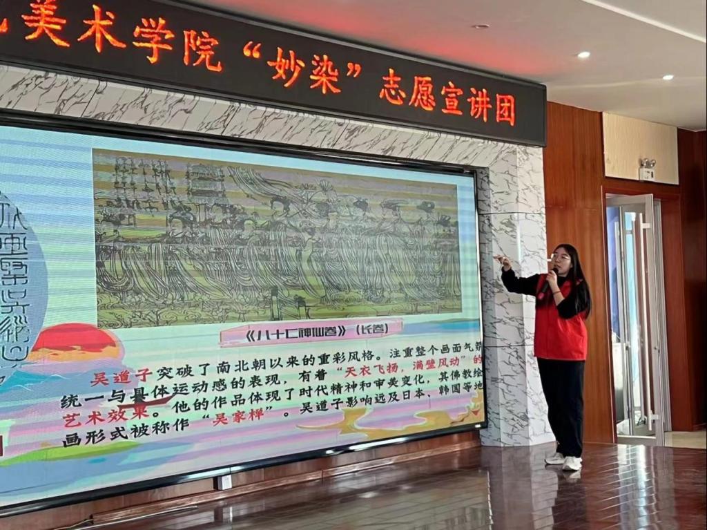 本次活动采用互动宣讲的方式,根据活动主题首先对中国历代绘画大系的内涵和意义进行讨论,调动在场学生了解中国传统绘画艺术的积极性。宣讲团成员用深入浅出的方式通俗易懂地为学生阐述中国传统绘画的发展历程与基本知识,例举历代名家名作,引导学生对中国画艺术的魅力展开思考,从精神层面上提升学生对中国画知识的了解程度,增强艺术审美能力。