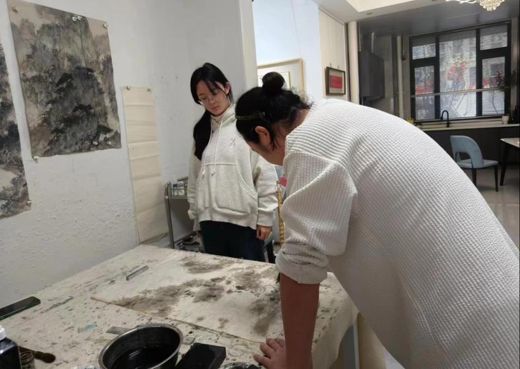 实践心得:为了更好的拓展专业知识,在实践中发挥自身专业性,1月13日,我来到山东省济南市长清区中国美客艺术创业园,与杨潇老师进行了一场有趣的书画交流活动。首先,杨潇老师创作了一幅山水画,老师通过笔墨的运用和构图的安排,将对自然、生活和情感的理解诠释在画面中。我亲身体验作画过程,在专注的创作中感受到心灵的宁静。其次,我与杨潇老师进行了作品交流,通过观赏老师们的作品,我深刻感悟到创作的魅力。最后,杨潇老师给我写了一福书法作品,我更深刻地领略到传统文化的独特之美,体验到艺术创作的乐趣和灵感的启示。我非常感谢这次与杨潇老师的交流与学习,让我深刻感受到艺术文化的魅力。