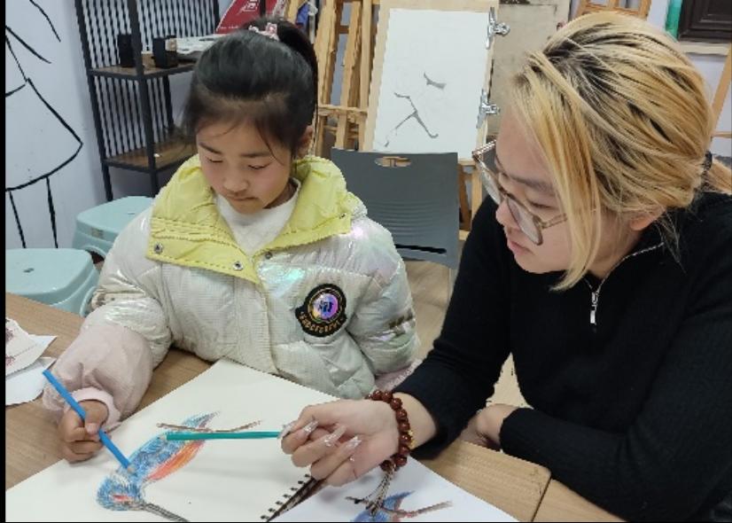 (图为许露允给小朋友讲解绘画知识)
