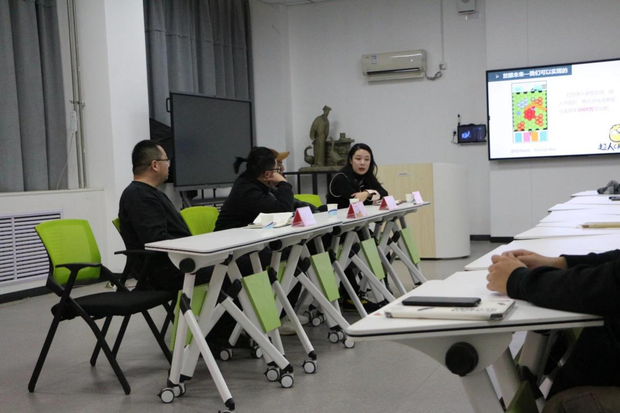 宣讲会现场,毕业班辅导员朱员从毕业生数量、专业方面详细介绍毕业生情况,结合毕业生具体情况提问企业负责人。山东卜氪文化传媒有限公司董事长张明祥先生通过PPT为毕业生介绍其企业文化和发展历史,再分别从薪资、福利待遇、师资培训、招聘需求、公司发展前景等方面展开详细介绍。