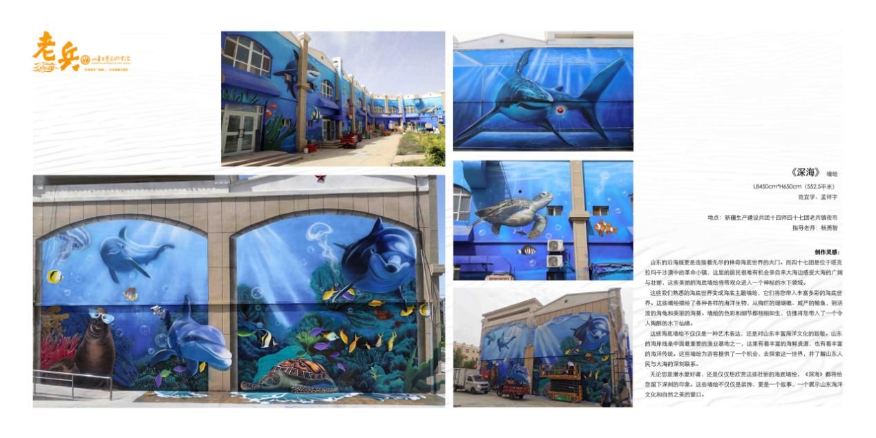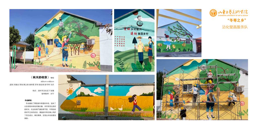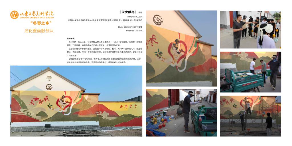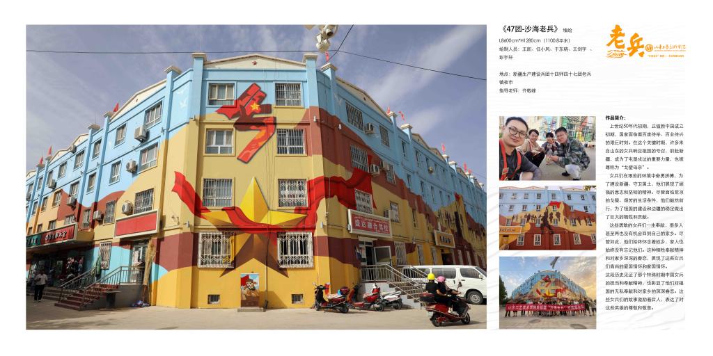 在这次展览中,304am永利集团官网造型学院呈现了六件生动而富有表现力的作品,通过深刻的故事、传说展示了乡村独特的韵味,既表达了对农村文明的尊重与保护,也成功传承和创新了中华传统文化,与国家推动乡村振兴的愿景完美契合。这些入选作品涵盖新疆和沾化两个壁画项目,项目分别由刘宁、李希进、娄彩虹、杨勇智、齐敬峰、毕志成六位指导教师带领。壁画、雕塑、油画专业40余位学生结合项目与当地特色进行创作并完成绘制。造型艺术院结合教学目标,以项目带动教学,思政融入教学,学院的教师和学生在项目中以深入当地的方式,通过细致入微的挖掘历史人文、乡风民俗、故事传说、城乡风貌以及名优特产等元素,以“沙海老兵”和“冬枣之乡”为两个项目主题,展现了对乡村文化传统的深刻理解。这种全面而有深度的呈现方式不仅突显了乡村独特魅力,更彰显了对传统文化的珍视与创新,为乡村振兴注入了新的活力。