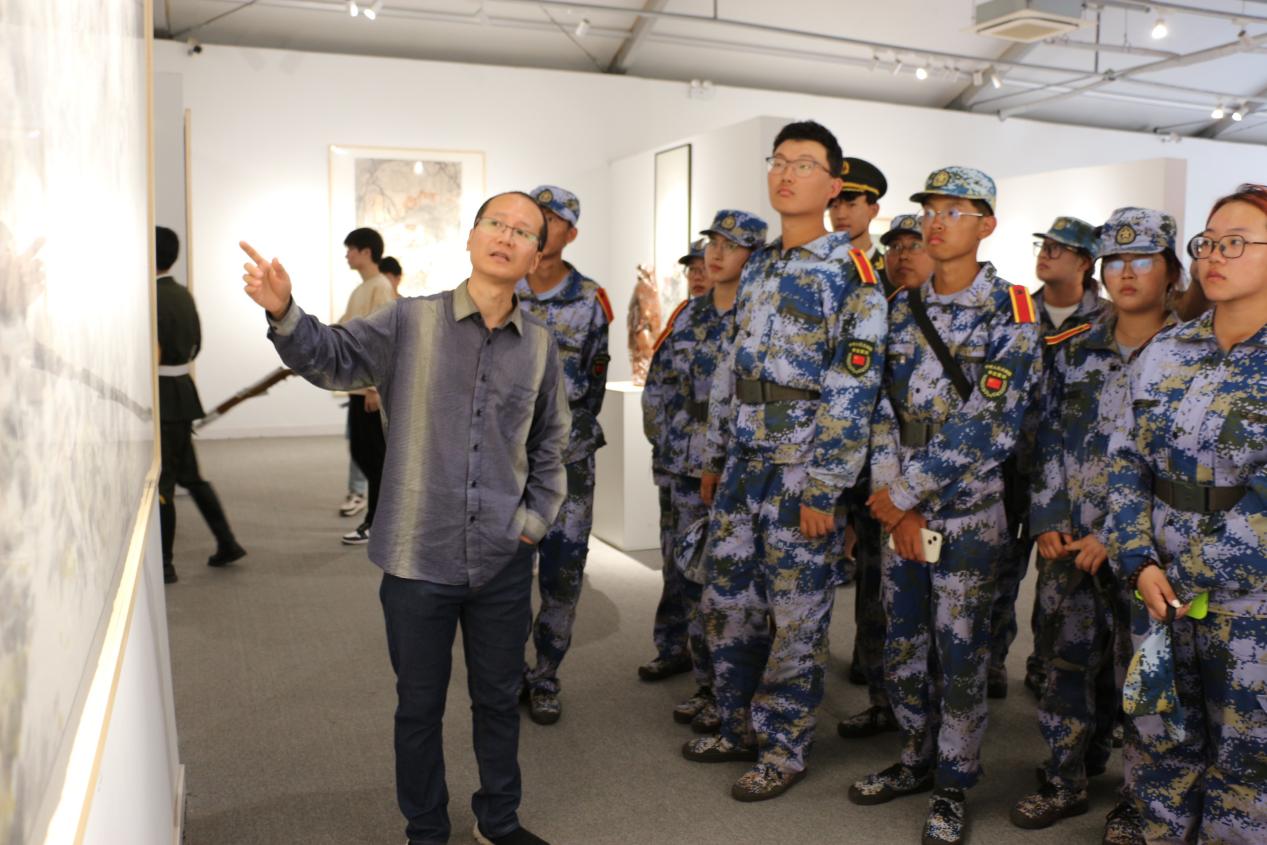 各班入展后由各专业教研室负责老师带领新生参观。过程中,老师们介绍各专业的历史发展及师资力量,解析作者表现手法、提炼作品主题思想、分析作品艺术特色,讲解各专业于中国传统绘画创新与拓展研究中的定位。此外,还简述了各专业的就业前景,使学生初步了解所学专业的 发展方向,并回答学生的疑问,提出指导意见,为学生答疑解惑。