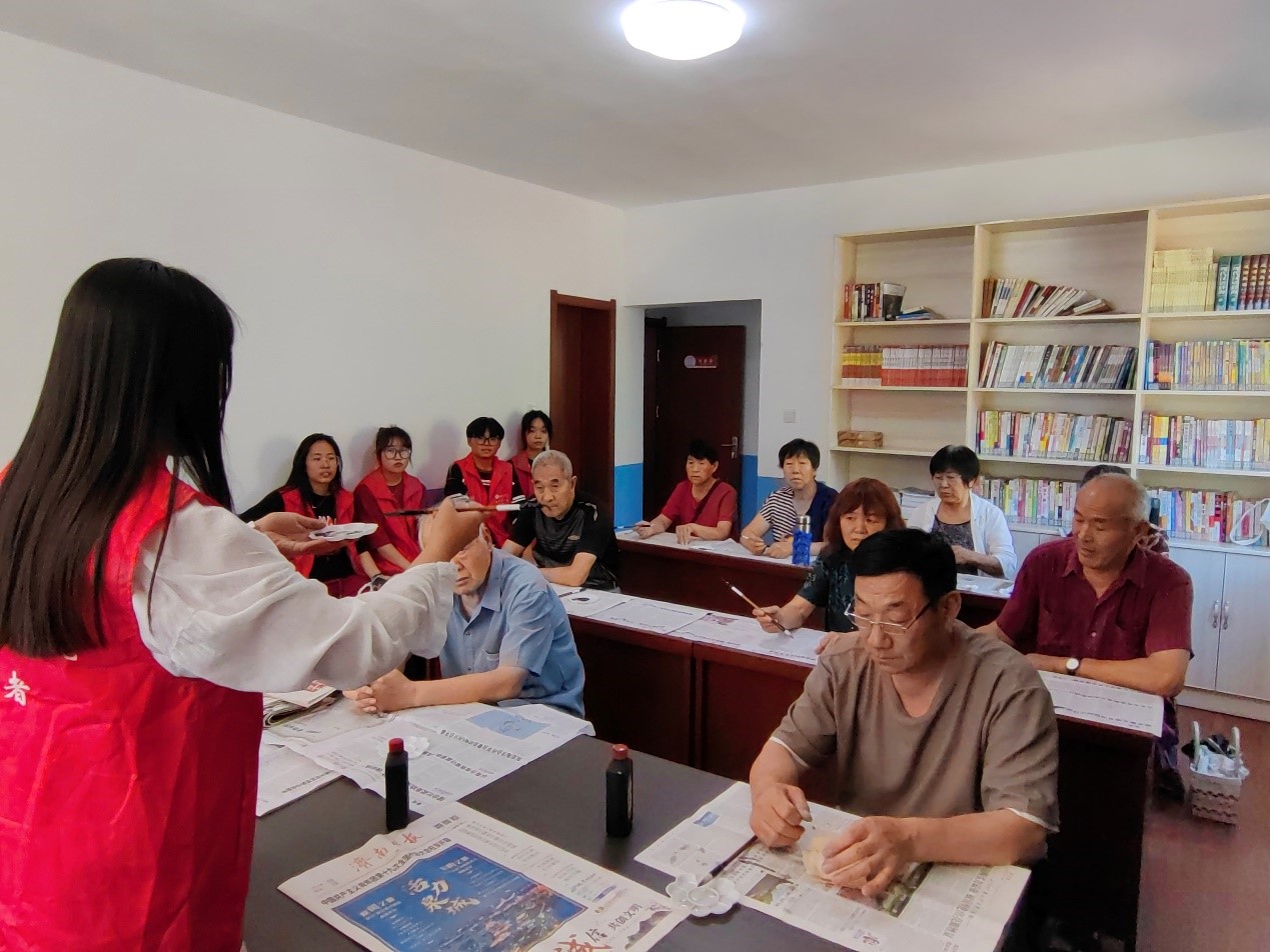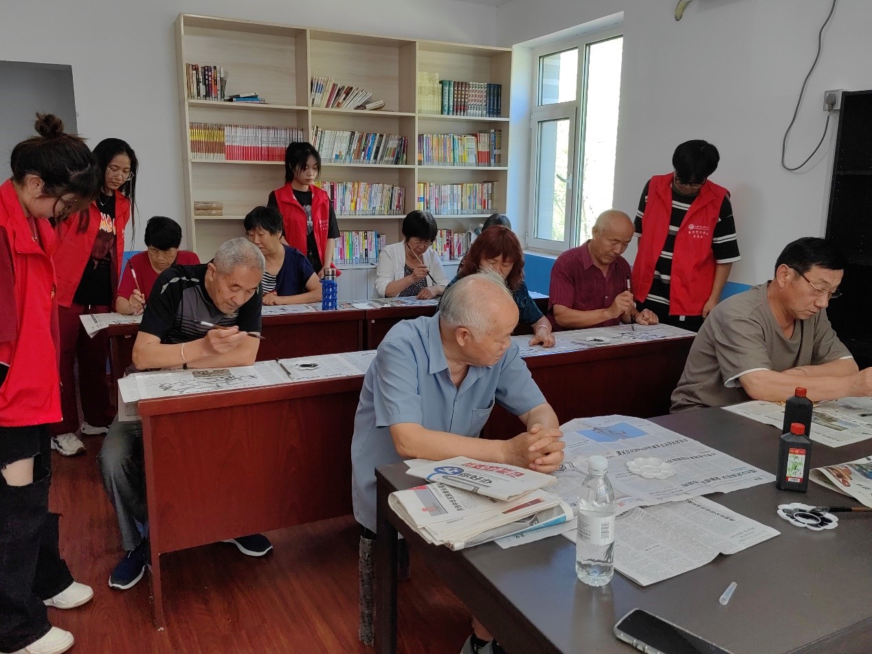 为深入学习宣传贯彻党的二十大精神和习近平新时代中国特色社会主义思想,推进“百万大学生进社区”实践计划,9月25日,造型艺术学院组织以学生党员、入党积极分子、学生干部为主体的志愿者前往紫薇阁社区开展“一染墨香 书写青春力量”志愿服务活动。