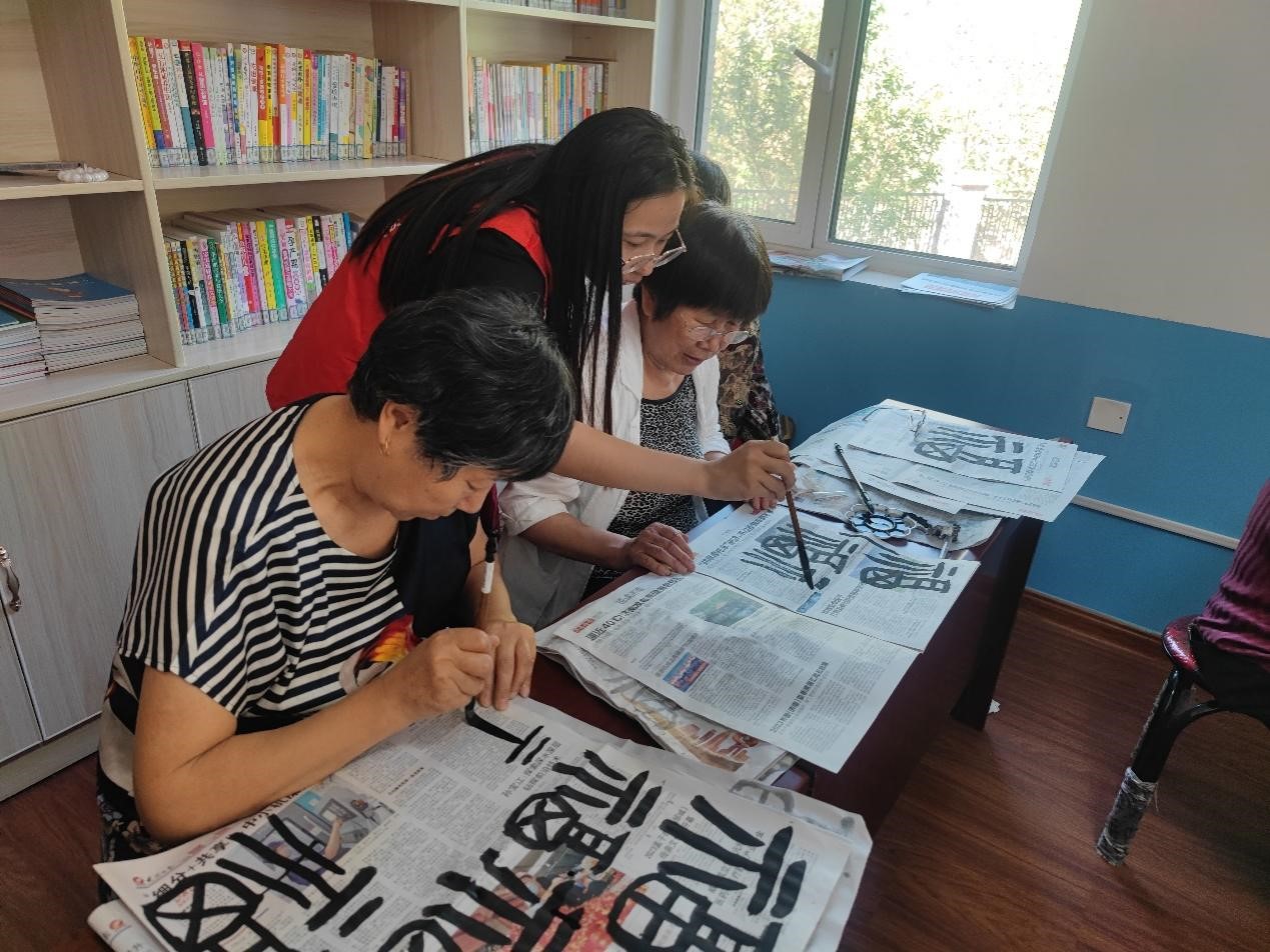 活动期间,学院志愿者充分发挥书法专业特色,为社区党员讲解了中国书法中代表性的流派和人物,结合书法史展示了经典碑帖,并赏析精彩作品。学习书法不仅可以修身养性,还能拓宽思想境界,培养出与众不同的书画气质,提升审美能力。现场墨香飘逸,学习气氛浓郁,志愿者们亲自示范书法作品,带领大家现场书写体验,一笔一划地精细学习,挥毫泼墨、尽抒情怀。最后,在红色的宣纸上写下一个个饱满圆润的“福”字,彼此进行交流学习,在促进文明社区建设的同时,也为社区新时代文化增添新活力。