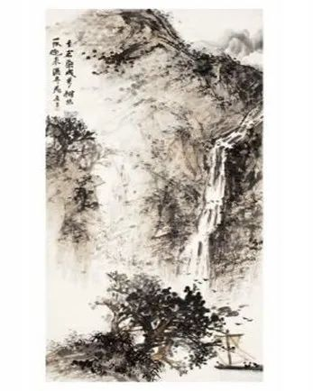 韩庆生 《一帆迎来瀑布飞》 中国画110×48厘米