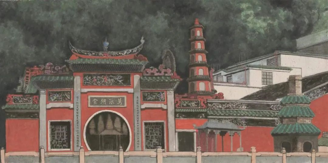 潘鲁生 《澳·妈阁庙》纸本彩墨124×245厘米 2023年