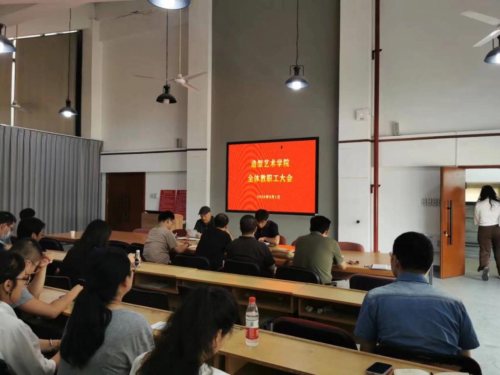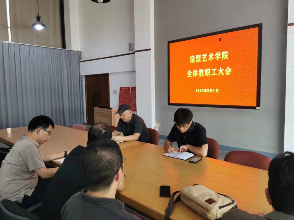 9月1日,造型艺术学院召开新学期全体教职工大会。造型艺术学院院长刘宁、党总支书记李希进、各教研室主任及全体教职工参加本次会议,会议由院长刘宁主持。