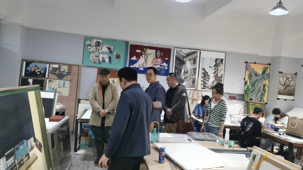 在昆明理工大学考察期间,参观考察艺术与传媒学院环境艺术设计系、美术系、视觉传达设计系的相关专业和教学情况,听取了解各专业一流建设的经验,并与学生进行了专业学习情况的交流。