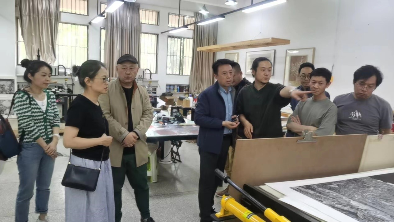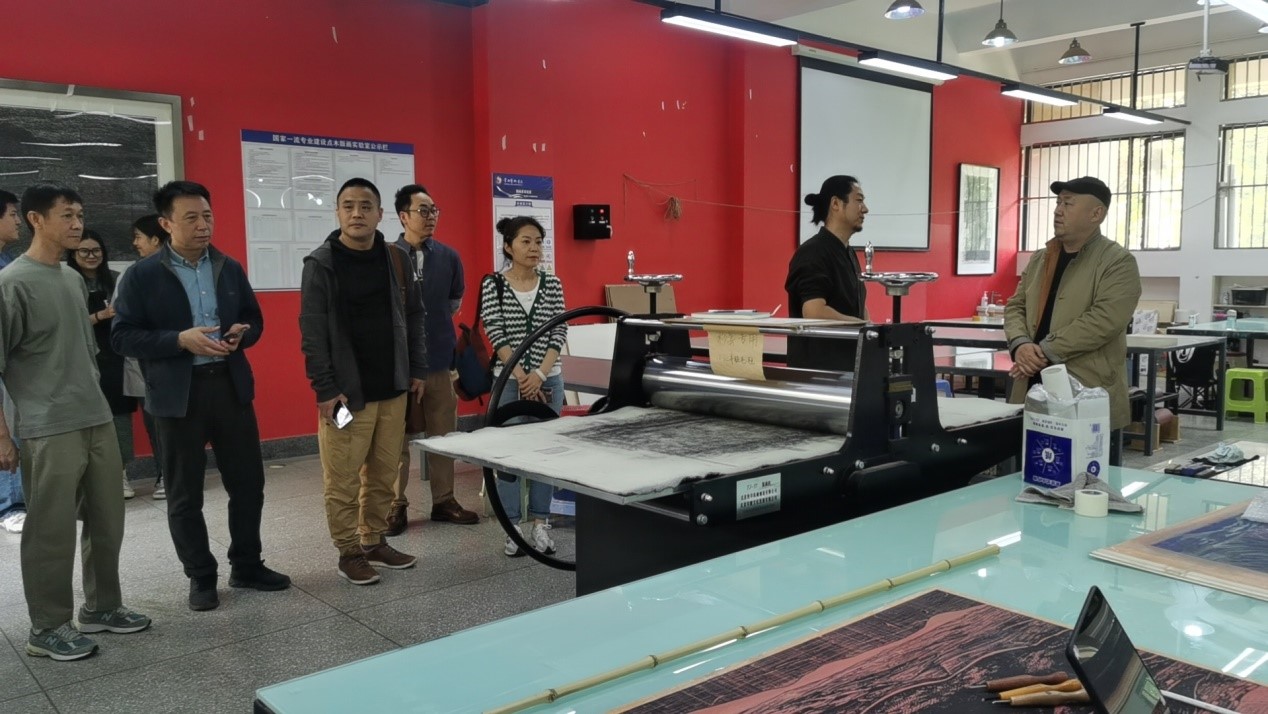 在与云南艺术学院美术学院座谈会上,造型艺术学院院长刘宁与美术学院院长曹悦分别介绍了各自学院的基本情况、办学特色、日常教学、科研管理等方面,特别就人才培养方案、培养模式、课程设置、制度建设、教学设施等情况双方与会人员进行了深入的探讨,并就两院加强学术交流活动达成初步意向,奠定两院今后的合作交流基础。云南艺术学院美术学院水彩画系主任周立明,油画系教授边小强,版画系副教授戴雪生,版画系徐绥新,办公室主任张焰等老师参加座谈。座谈结束后在曹悦院长的陪同下参观了各专业工作室、教室及实验室和工作坊等。