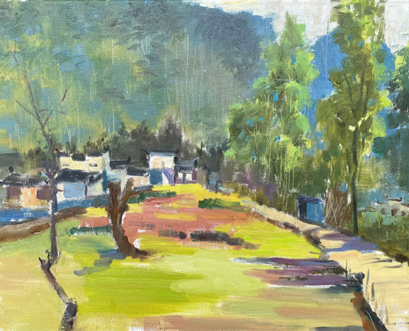 风景写生是油画专业的一门必修课程,在课程中,学生们走入大自然,感受自然的光色魅力,体会自然物象与绘画表现之间的关系,并为创作积累素材,提高艺术修养。"写生"亦是"创作",是面对自然界的临场创作。它是艺术家专业知识与艺术修养的整体体现。身处自然环境中,给予学生的除了具体物像和光色关系外,还有对氛围的感受。写生,必须身临其境,观察山川河流、民居村舍的风景,并身在其中沐浴春风、夏雨,激发画家情感的抒发。每个人对于眼前的自然有不同的体会,每个画家又会寻找个人的艺术语言去表达。"写生"一词,写是抒写,是用色彩语言、笔墨语言去表达;生即生机,是画家的审美与自然景象的契合。