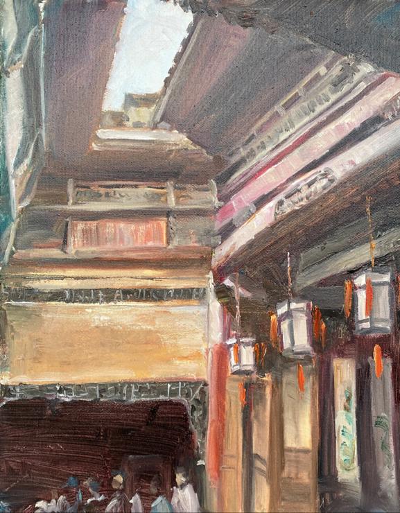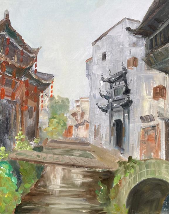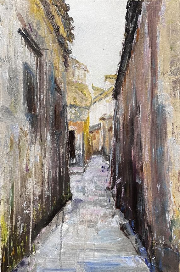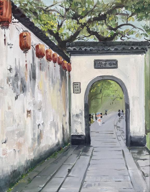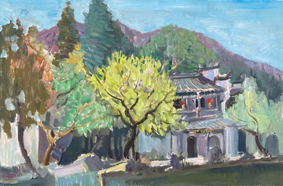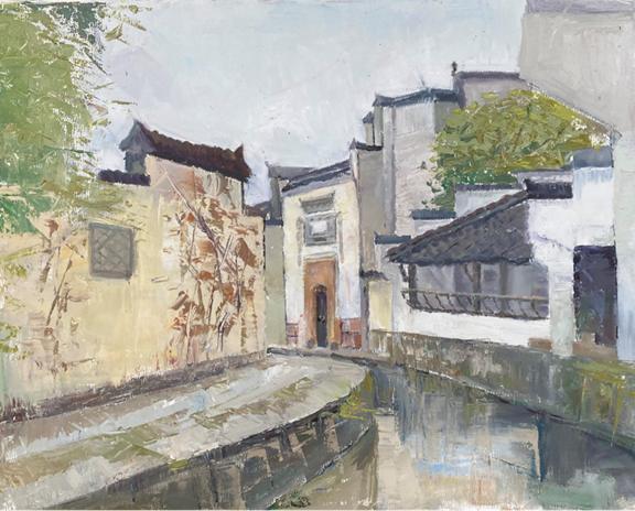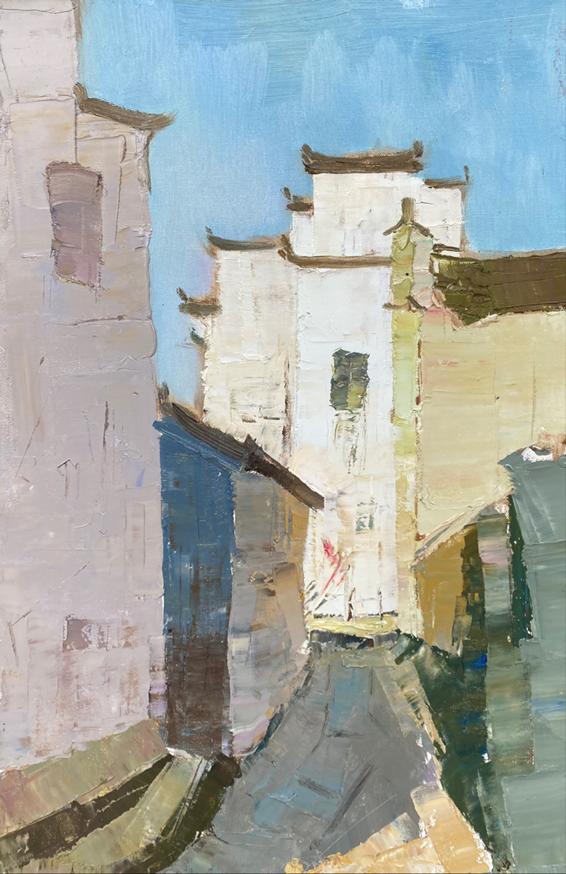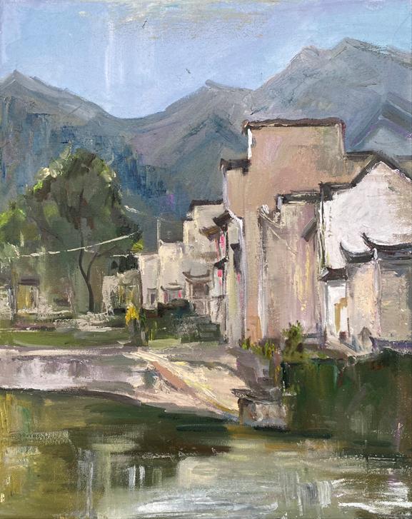 师生每日集体外出开展教学,先后到达宏村、秀里、卢村、西递、南屏、屏山等多个中国传统村落,师生们奔赴乡村田野,感受乡土风情,从具有地域特点的人文与自然景观中汲取艺术灵感,将理论知识与艺术实践相结合,再现自然、表达自然,由此进入艺术形式的世界,逐步形成个人油画语言面貌。