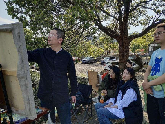 造型艺术学院一直秉承优良的教学传统,写生、创作是油画专业的主干课程,环环相扣、缺一不可,写生教学起着承前启后的重要作用。教师每日与同学们一起写生,进行现场示范,对学生写生进行过程性的教学指导。每晚回到驻地后,教师对学生当日的写生作业进行点评,指出画面中存在的问题,让学生在接下来的写生中继续完善画面。